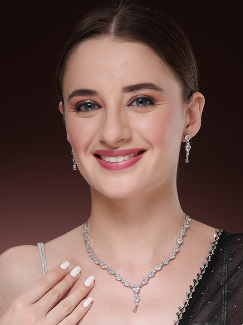 Women Silver-Plated Red CZ-Studded Handcrafted Jewellery Set