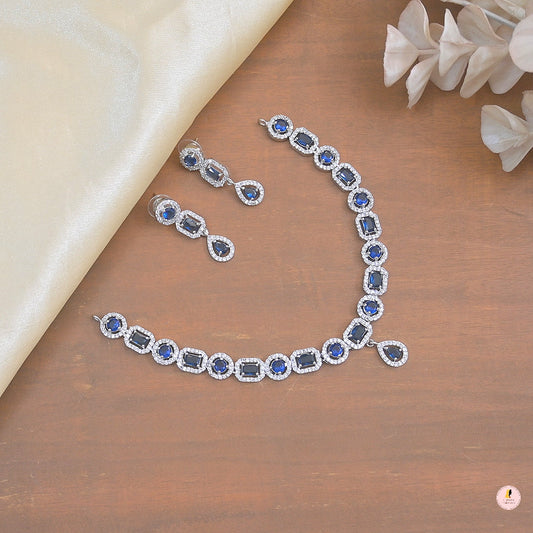 Green & Silver-Plated American Diamond Handcrafted Jewellery Set