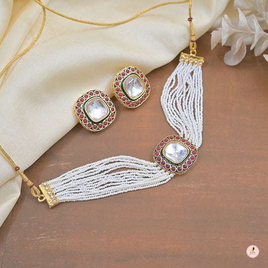 Gold-Plated American Diamond Studded Handcrafted Jewellery Set