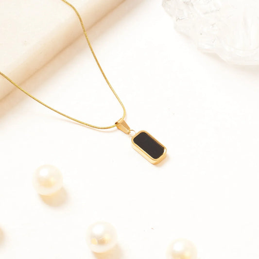 Antitarnish 18K Gold Plated Double Sided Gold Necklace With Black And White Pendant