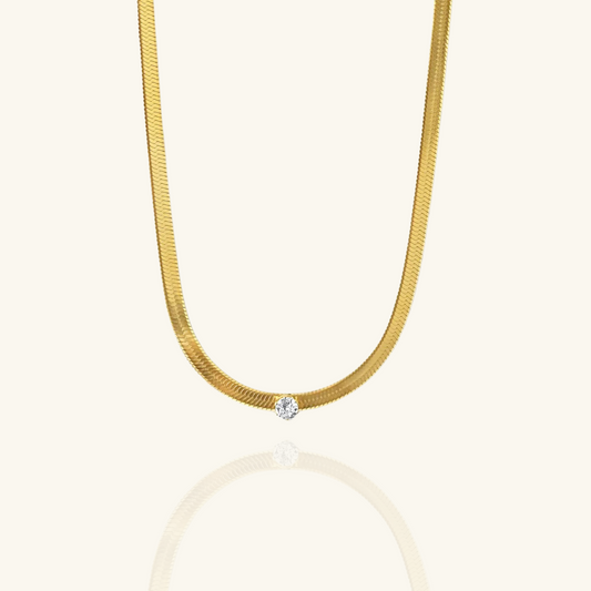 18K Gold Plated Snake Chain With A Solitaire Zircon